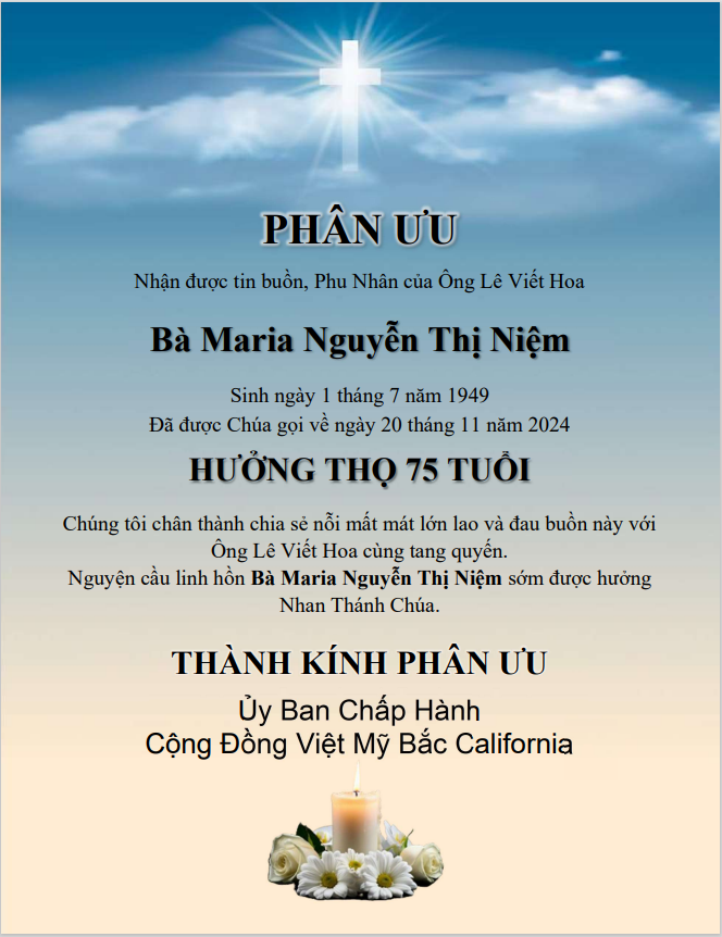 Phân Ưu Bà NGUYỄN THỊ LỰU - Apr. 03, 2024.
