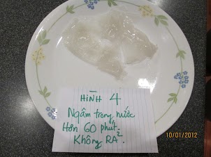 4/ Ngâm nước 60 phút, chỉ hơi nở nhưng không rả. Thấy dai nhưng không giống bánh làm bằng bột.