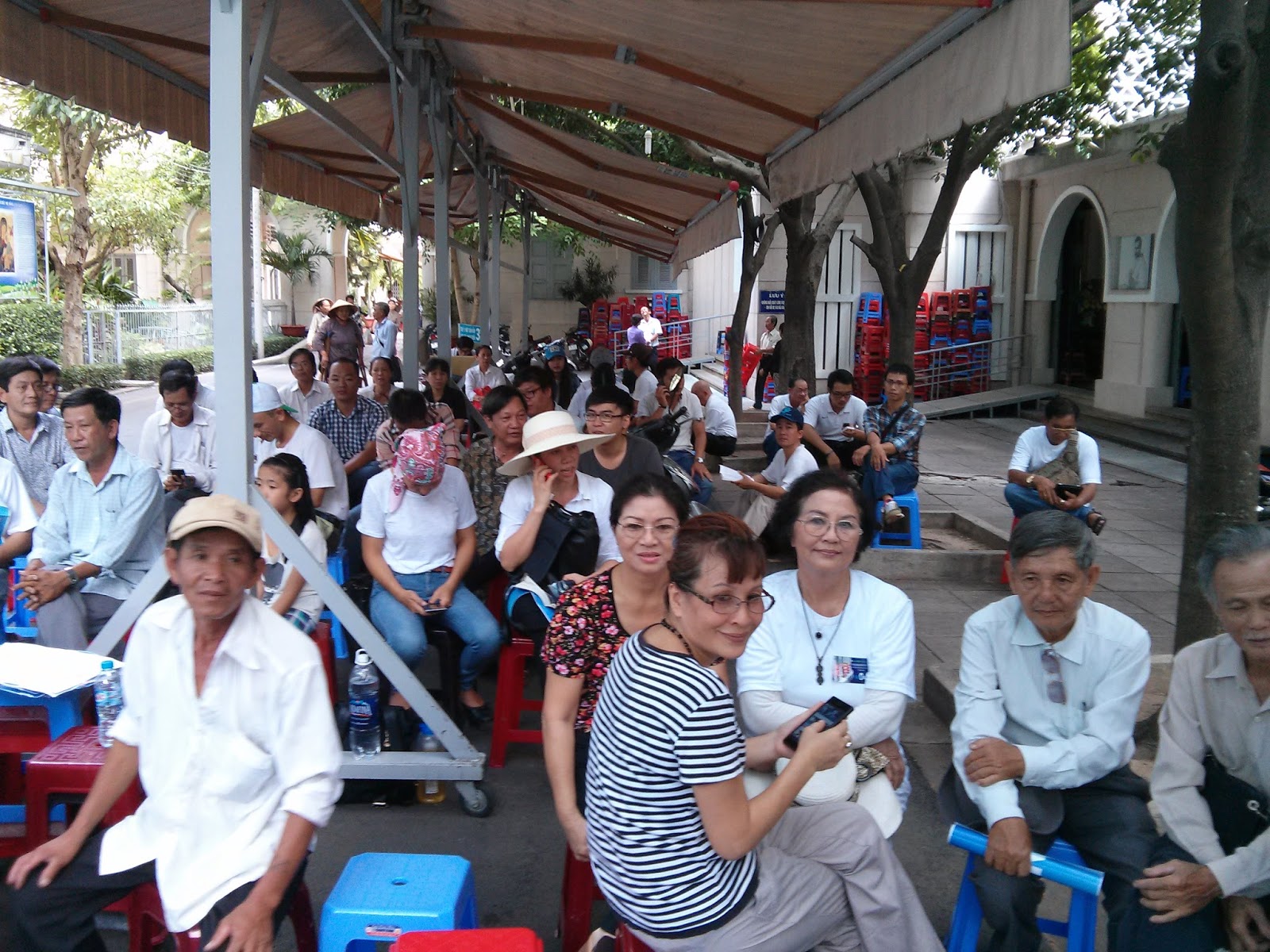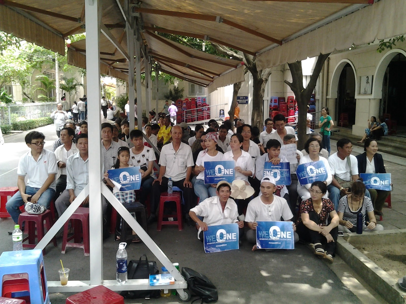 Mặc dù bị công an chốt chặn, canh gác nhưng từ 8 giờ sáng, đã có hơn 60 người gồm những nhà bảo vệ nhân quyền, bloggers, Facebookers và dân oan ở nhiều tỉnh, thành tập trung tại Nhà thờ Đức Mẹ Hằng Cứu Giúp, Dòng Chúa Cứu Thếtại Gài Gòn.