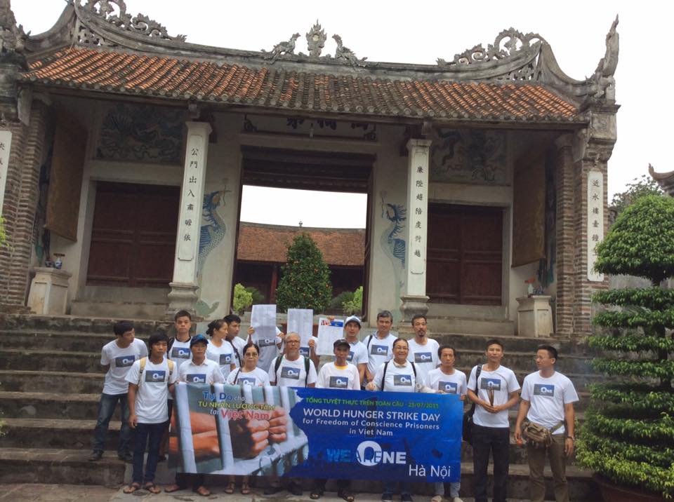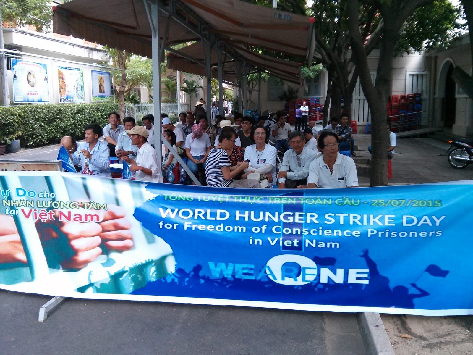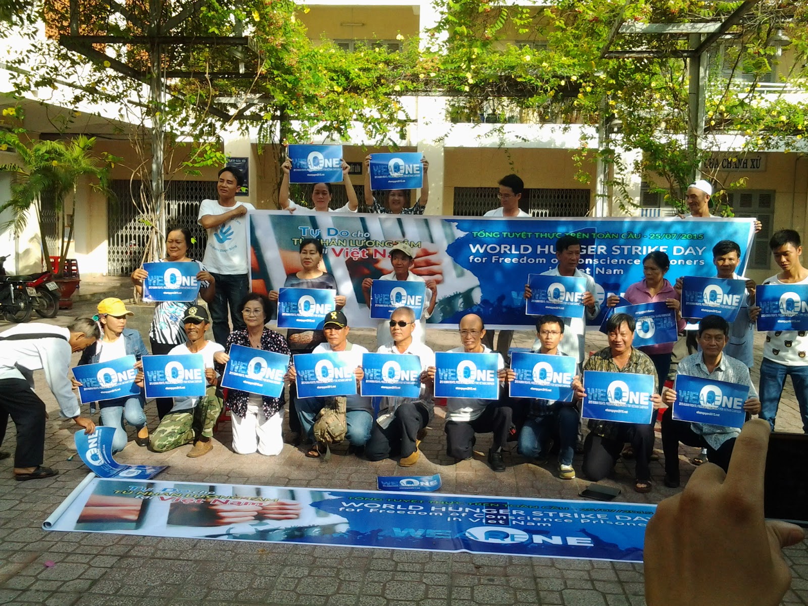 Blogger Nguyễn Hoàng Vi đã tuyên bố: “Đồng hành và đòi tự do cho tất cả các TNLT tại Việt Nam. Mặc dù không thể đến nơi tập trung để tuyệt thực cùng mọi người vì vòng vây an ninh trước ngõ vào nhà nhưng tôi bắt đầu tuyệt thực tại gia từ 8:00 sáng 25 đến 8:00 sáng 26.07.2015 trong tinh thần WE ARE ONE để hiệp thông cùng các anh chị em.”