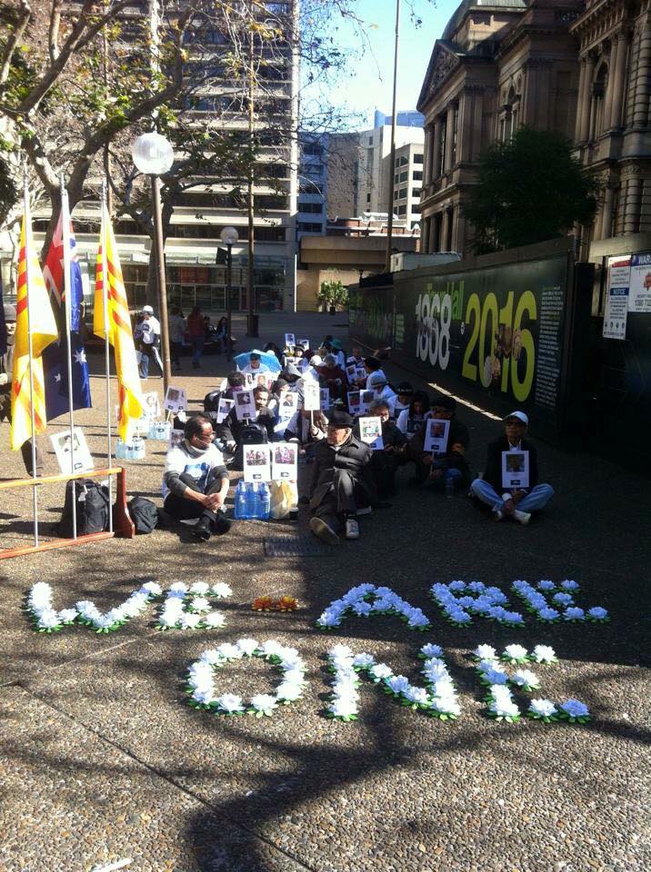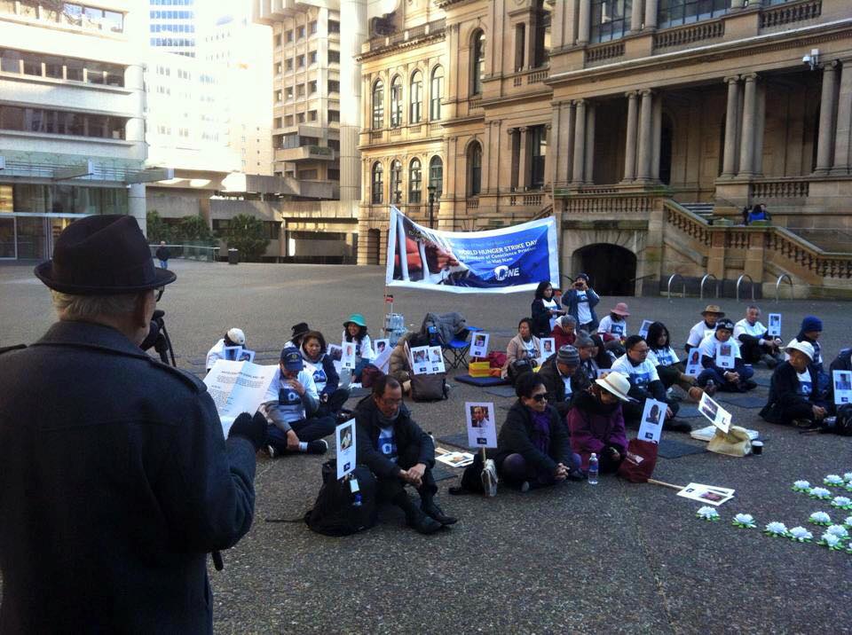 Tại Úc Châu, từ tối hôm trước những bản cầm tay tranh đấu cho các tù nhân lương tâm và nước uống cho người tuyệt thực đã được chuẩn bị chu đáo: